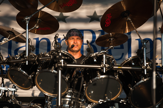 Ich habe bereits im Sommer ein Privatkonzert in einem kleinen Raum, ein öffentliches Open-Air-Konzert einer Geestachter Band und am Freitag halt das Trommel-Konzert in der Fabrik fotografiert und eine Erfahrung ist, dass die Lichtverhältnisse auf solchen Events schon eine echte Herausforderung ist, weil sie sich ständig ändern. Mal hast du buntes Licht, mal ist es ganz hell, dann wieder dunkel, dann kommt das Licht mal von vorn mal von hinten. Ständig ist man dabei, die Belichtung anzupassen. Das folgende Bild entstand übrigens bei dem Open-Air-Konzert: