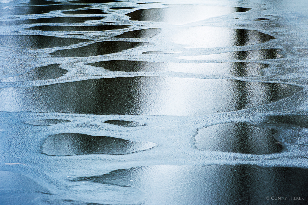 24 Endlich Eis auf den Seen. Ich mag die Strukturen und Formen, wenn die Eisdecke noch nicht geschlossen ist, so wie hier. Die Perspektive war hier besonders wichtig, denn ohne die Spiegelungen der Bäume, wäre das Bild nicht halb so spannend (habe ich ausprobiert).