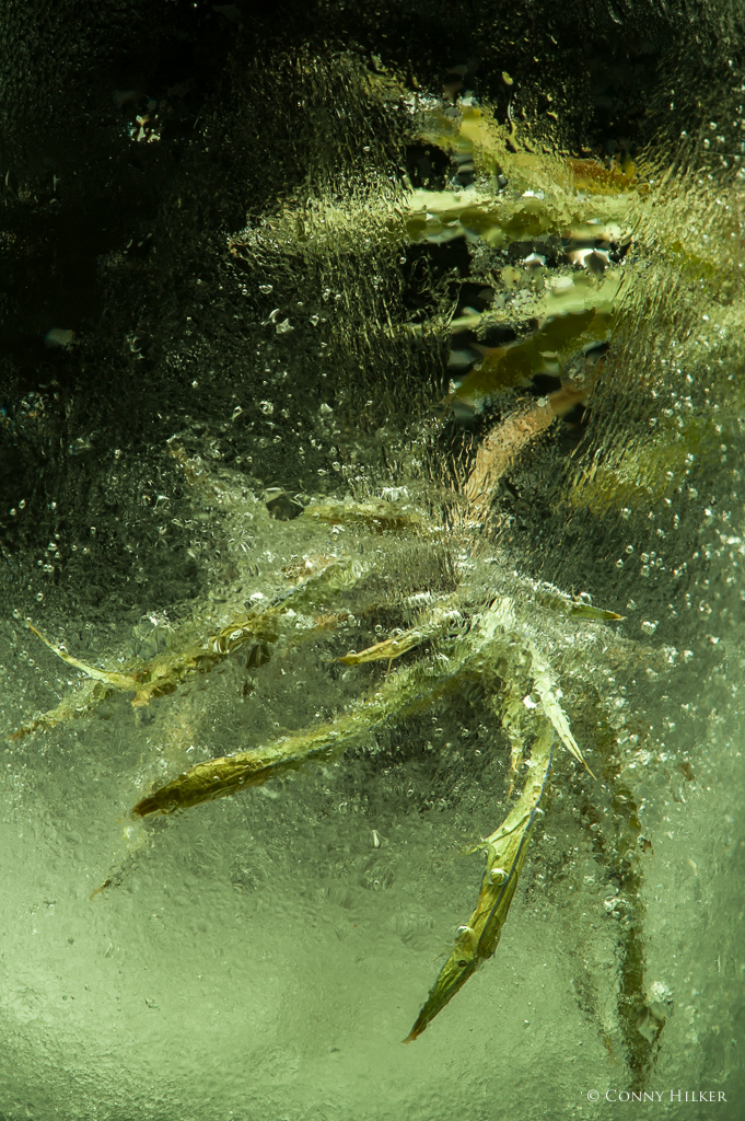 39 UNDER ICE II – Dass ich einen Faible für vertrocknete Pflanzen habe, habt ihr vielleicht schon registriert. Diese habe ich in einem Glas Wasser eingefroren und mit je einem Blitz von oben und unten fotografiert. Die Tönung habe ich durch den Einsatz von Filterfolien vor den Blitzen erreicht.
