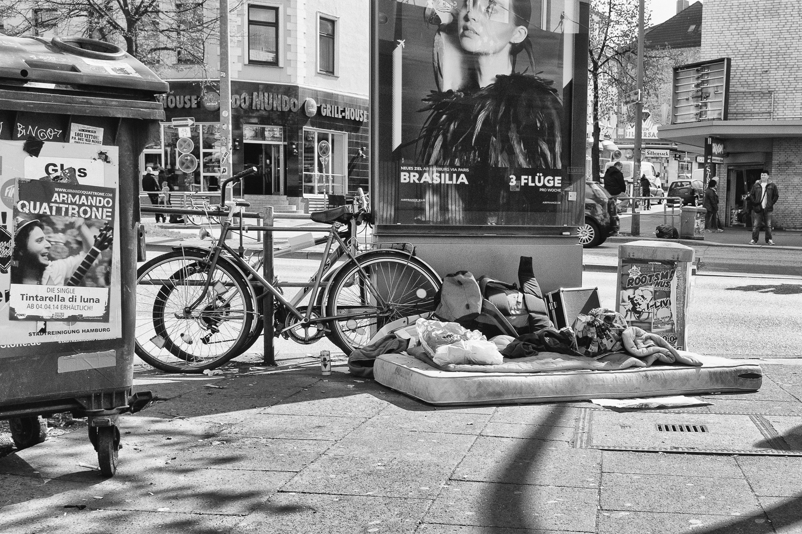 6. Eine schöne Auswahl zu diesem Thema. Das erste Bild ist doch typisch für dich. Bilder dieser Art finden sich ja immer wieder hier auf deinem Blog. Das Thema berührt dich, man spürt es als Betrachter. Die Szene läßt einen nicht los und -da geht es mir wie Paul – läßt mich ratlos zurück. der offensichtliche Kontrast zum Werbeplakat…. Hammer.