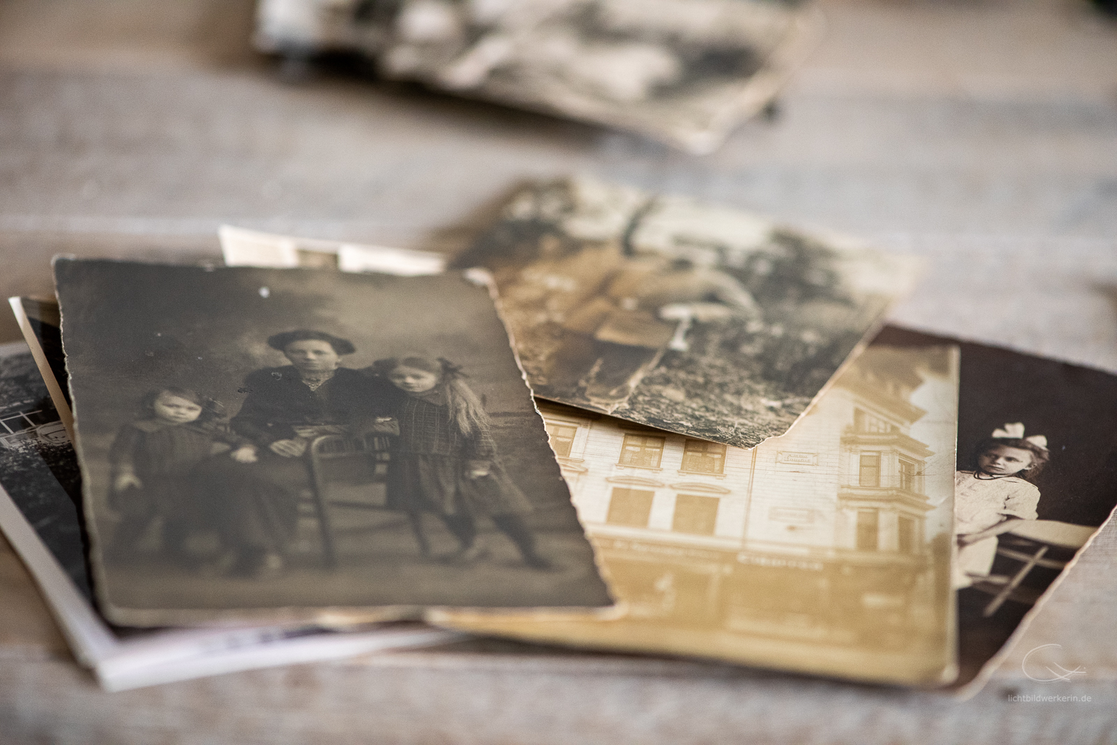 Es gibt aber auch viele Fotos, die viel älter sind. Von unserer Ur-Oma und anderen Verwandten, die wir nie kennengelernt haben. Auf manchen der Rückseiten ist vermerkt, wer darauf abgebildet ist. Aber das ist eher die Ausnahme. Aber das ist, was uns interessiert. Bilder von Bäumen, Vögeln, Stillleben wurden gleich aussortiert. Warum sollte ich ein Bild von einem See aufheben? Es sind die Menschen, die Momente ihres Lebens, die interessieren und es wert sind, für die nächste Generation aufgehoben zu werden.
