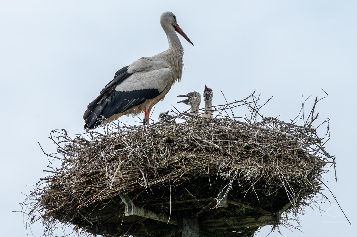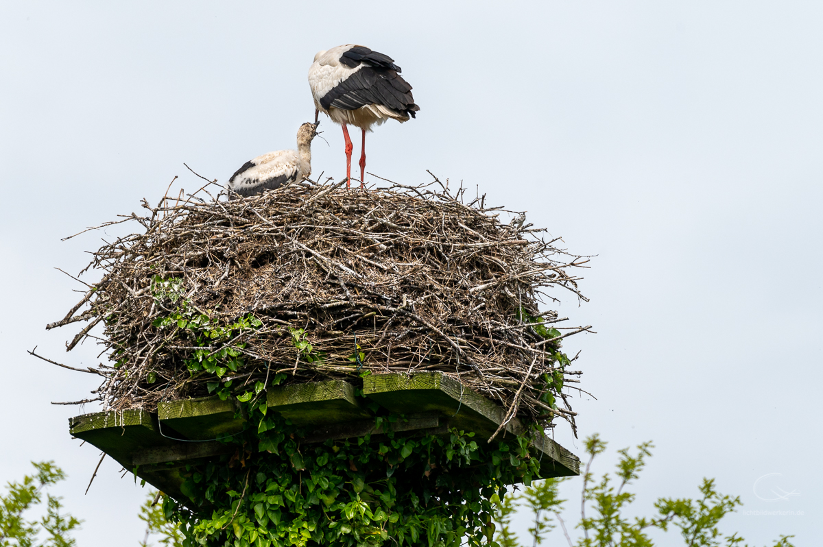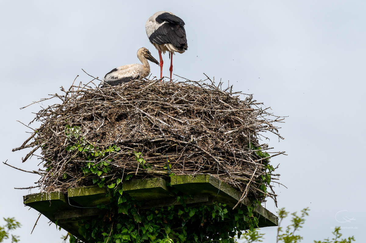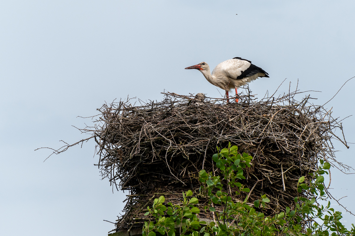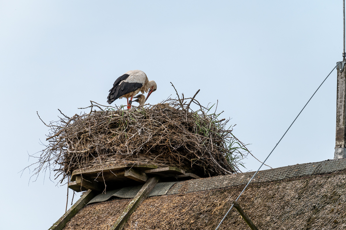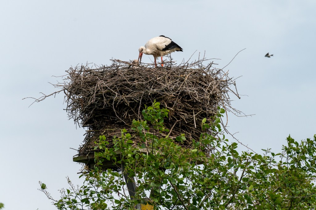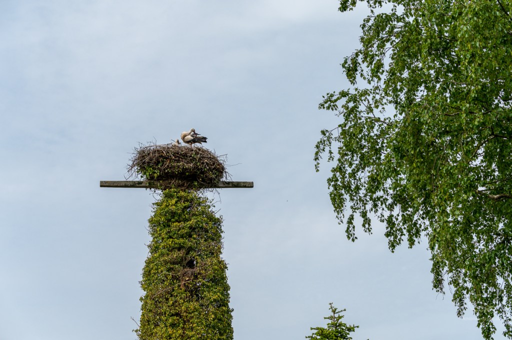 Neulich hatte ich Besuch und was steht als erstes an, wenn man in einem Storchendorf wohnt? Klar, eine Führung durch´s Dorf, vorbei an den vielen Storchenhorsten. Aktuell sind es 26 Storchenpaare, die noch brüten oder aber schon ihren Nachwuchs aufziehen. Insgesamt sind es aber viel mehr Störche, die sich hier rumtreiben, da nicht alle verpaart sind. Eine spannende Sache, wenn man aus der Stadt kommt und Störche nur selten zu Gesicht bekommt. Hier wird Meister Adebar gefeiert, der örtliche Gasthof ist nach ihm benannt: „Hoier Boier“ bedeutet Storch op platt. Dort wird selbst Bier gebraut, das Klapperbräu. Und der Nabu hat betreibt eine Storchenausstellung.