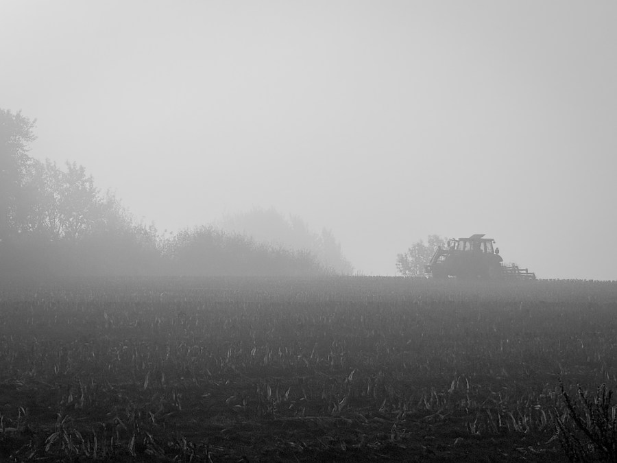 Auf dem Rückweg ist es dann leider vorbei mit der Ruhe. Ein Bauer hat mit seinem Tagewerk begonnen und pflügt den Acker. Der Motor dröhnt laut, fast kann ich die Vibrationen körperlich spüren.