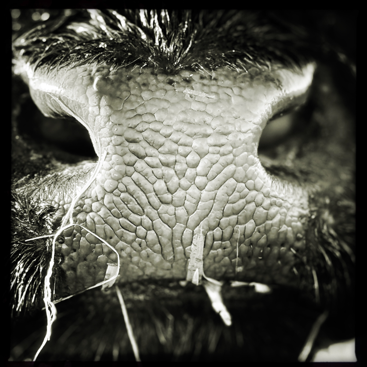 ja, ich hab mir schon gedacht, dass das die Nase von einem Rind ist, aber es sieht trotzdem auch wie ein Schlangenkopf als Makro aus, mit Reptilienschuppen und Nasenlöchern, die leicht wie Augen glänzen …