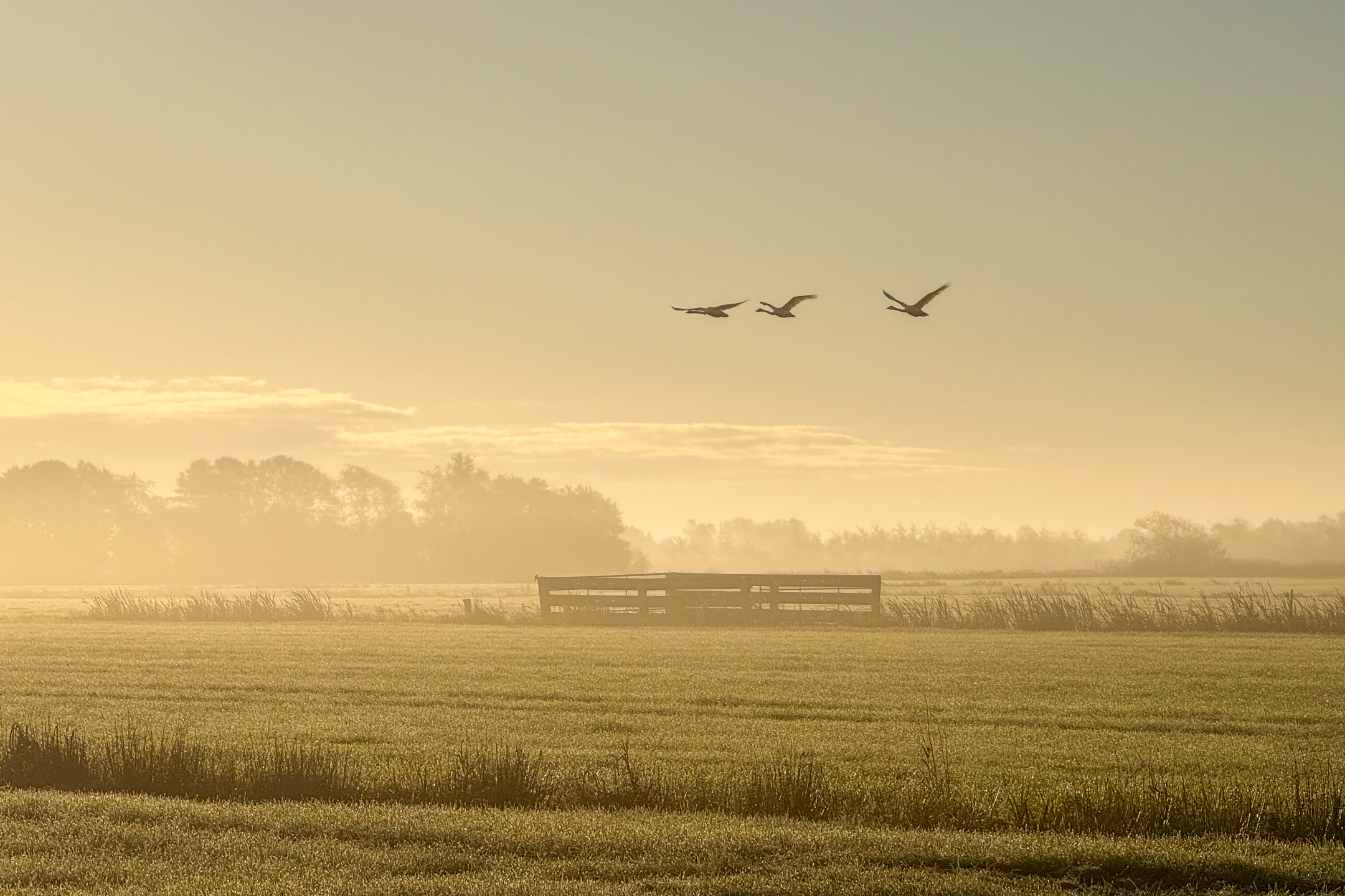 Die ersten Zugvögel fliegen ein. Ein Schauspiel, welches mich immer wieder fasziniert. An einem besonders stimmungsvollen, nebligen Morgen im Koog, habe ich das Glück mein Smartphone schnell genug aus der Innentasche meiner Jacke zu ziehen, um die drei laut trötende Zwergschwäne bei wunderschönem Licht zu fotografieren.