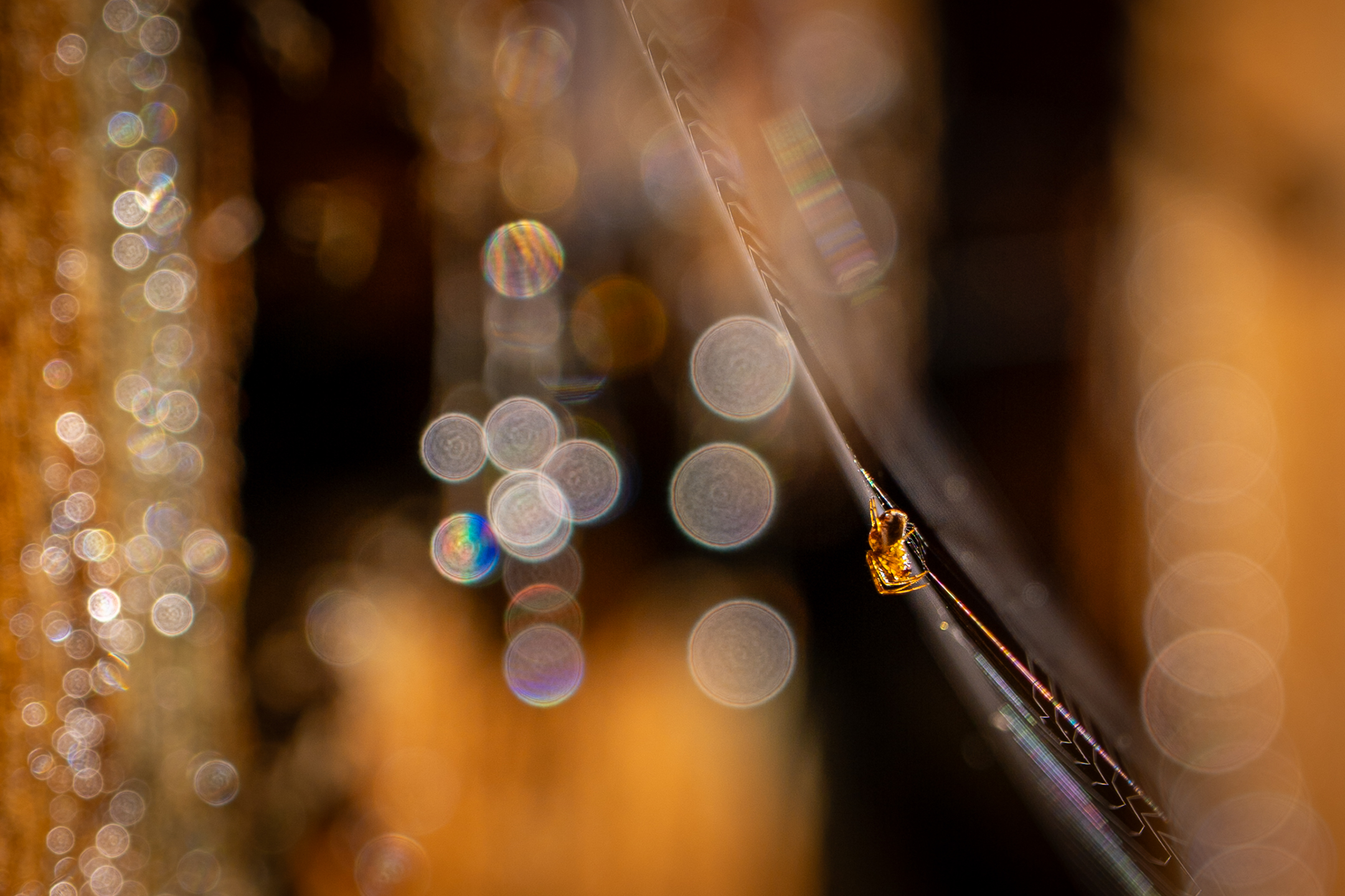 Winzig kleine Spinnen finde ich spannend. Das aus den abgeholzten Bäumen austretende Harz sorgt für ein wunderschönes Bokeh.